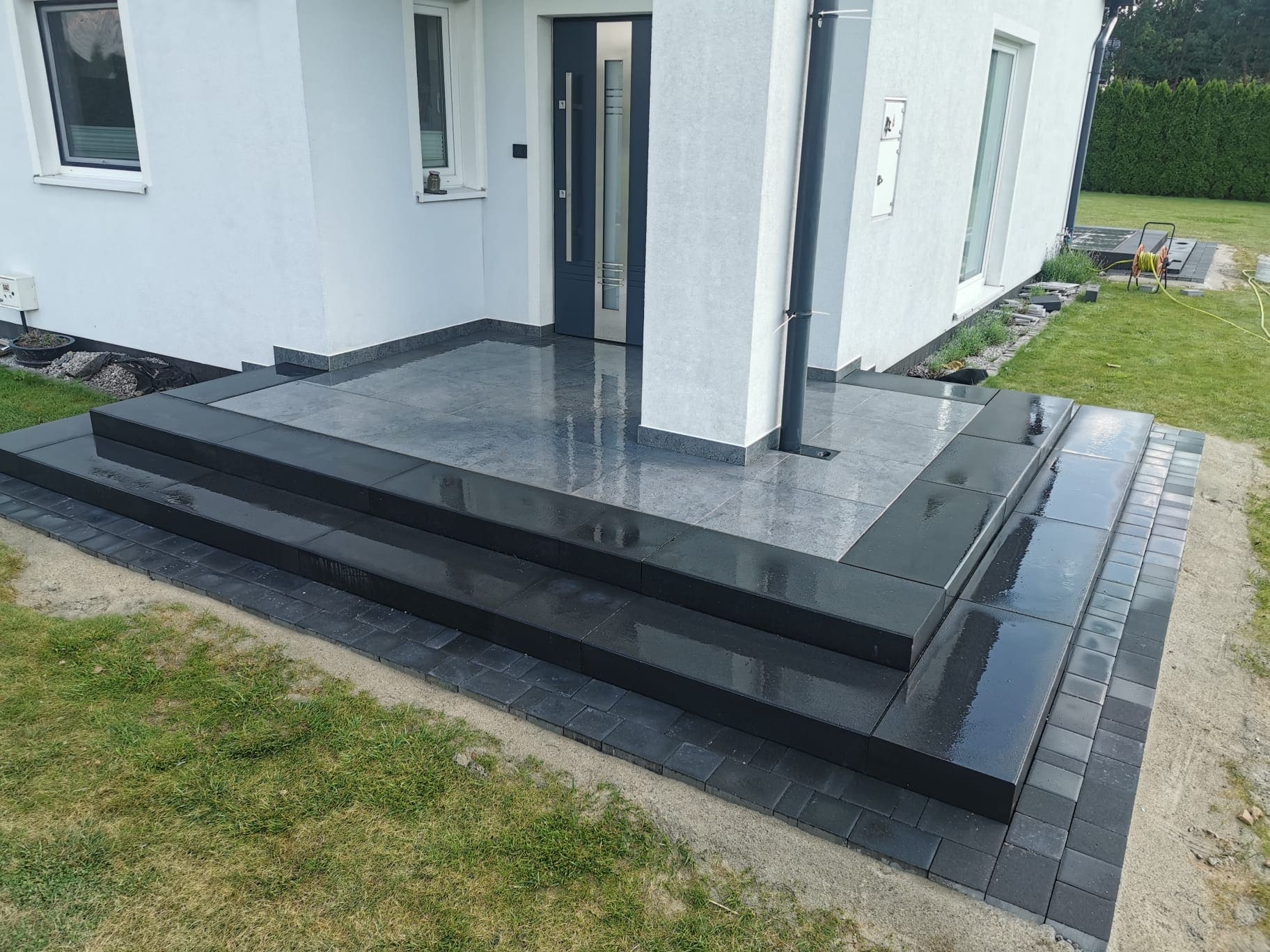 Układanie chodników, pjętów, podjazdów i placów. Dbamy o odpowiednią spadlerkę i drenaż.